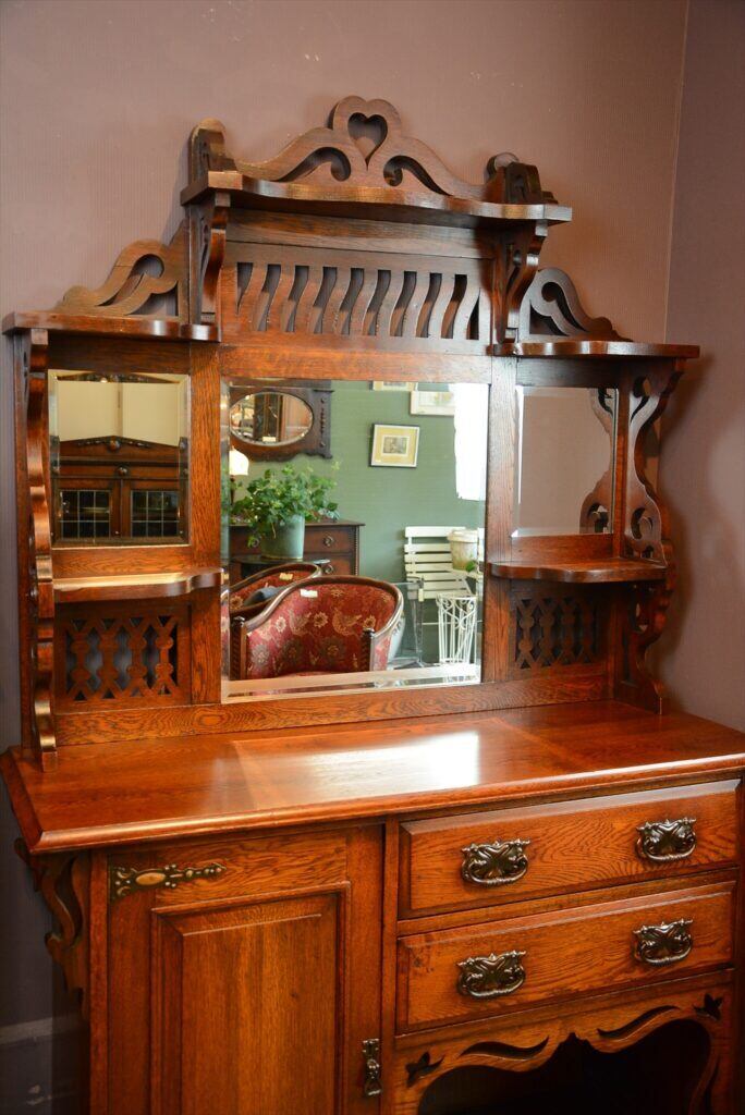 《ミラーバックサイドボード》アーツアンドクラフツ アンティークサイドボード