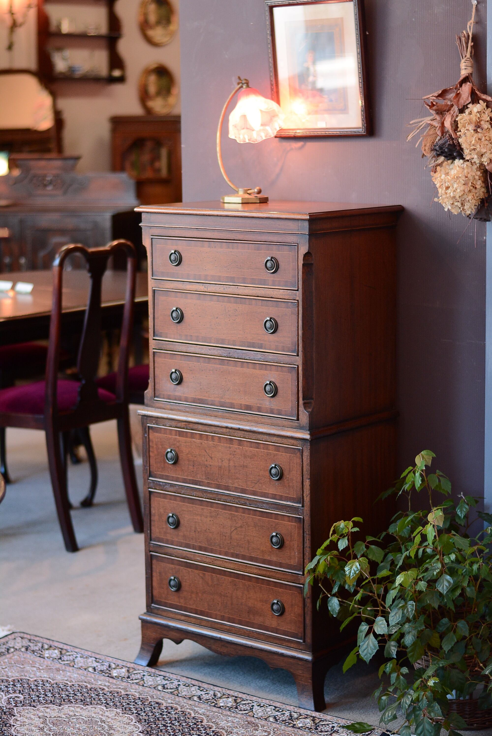 221a621《チェスト》チェストオンチェスト イギリスアンティーク 幅56cmの細身のチェスト