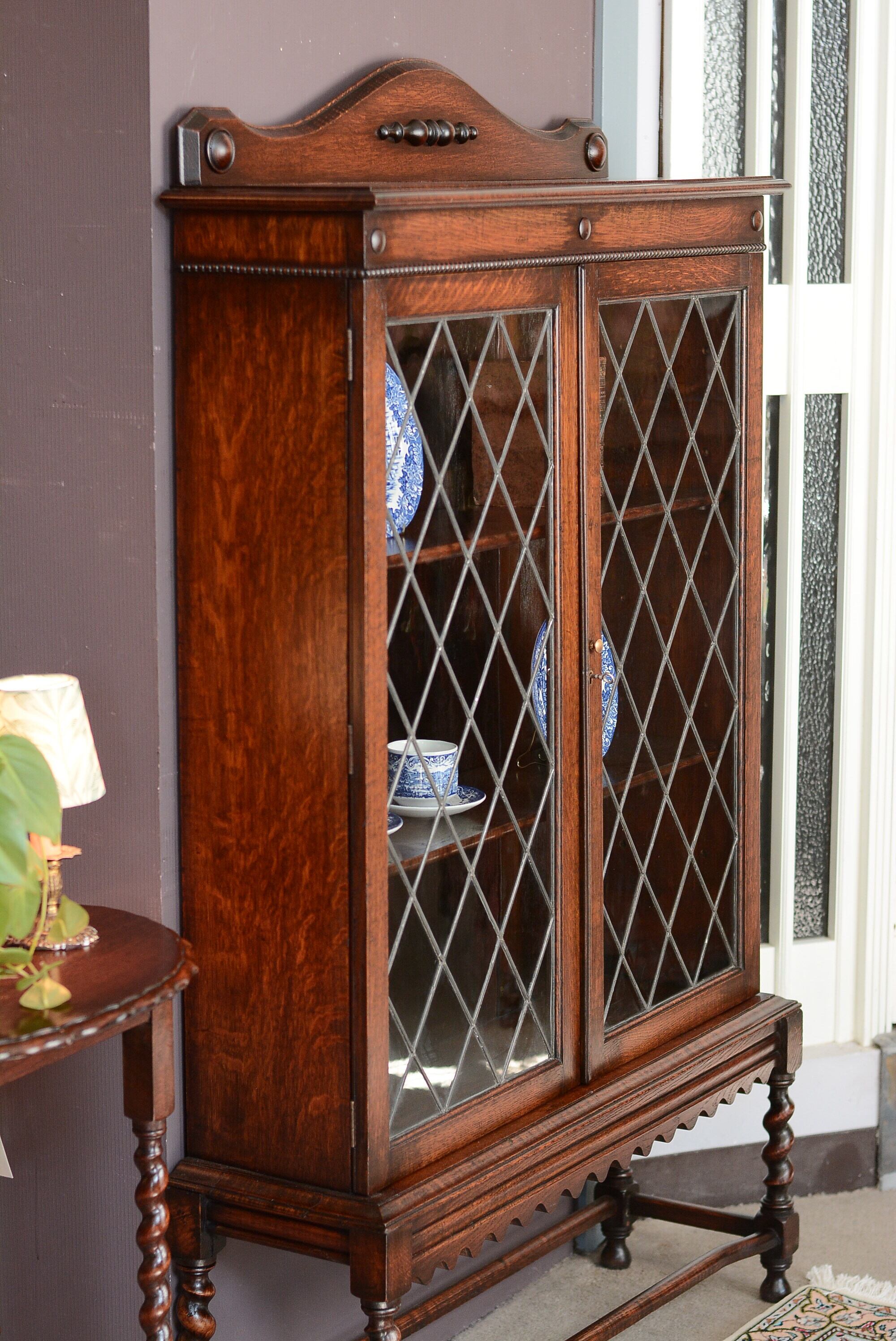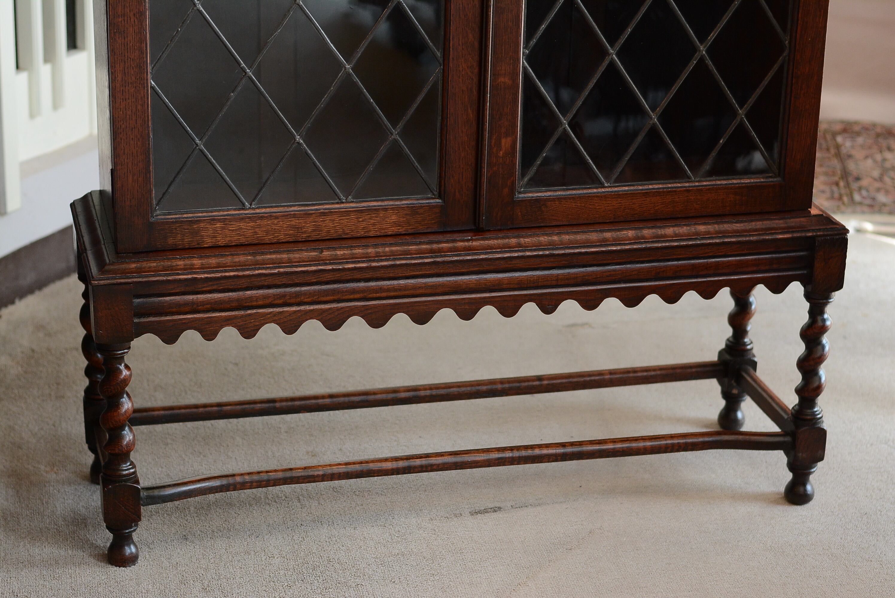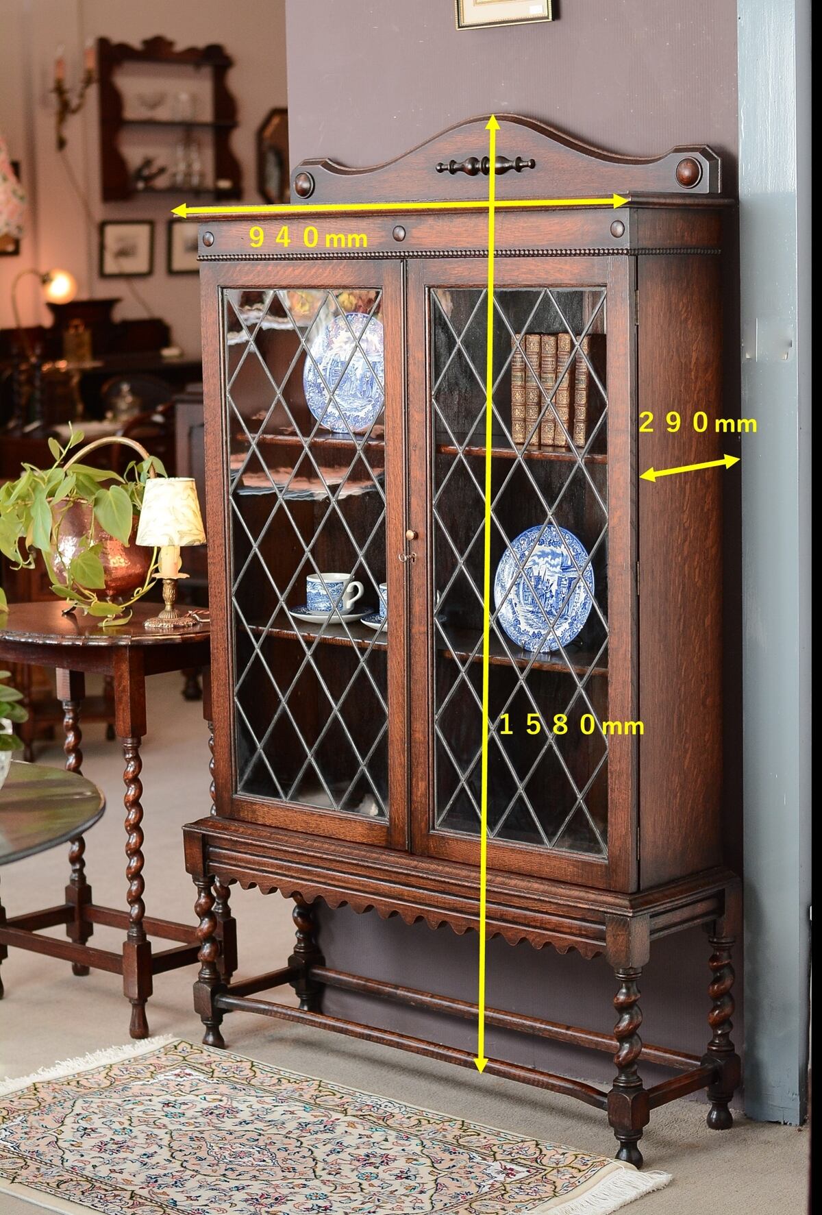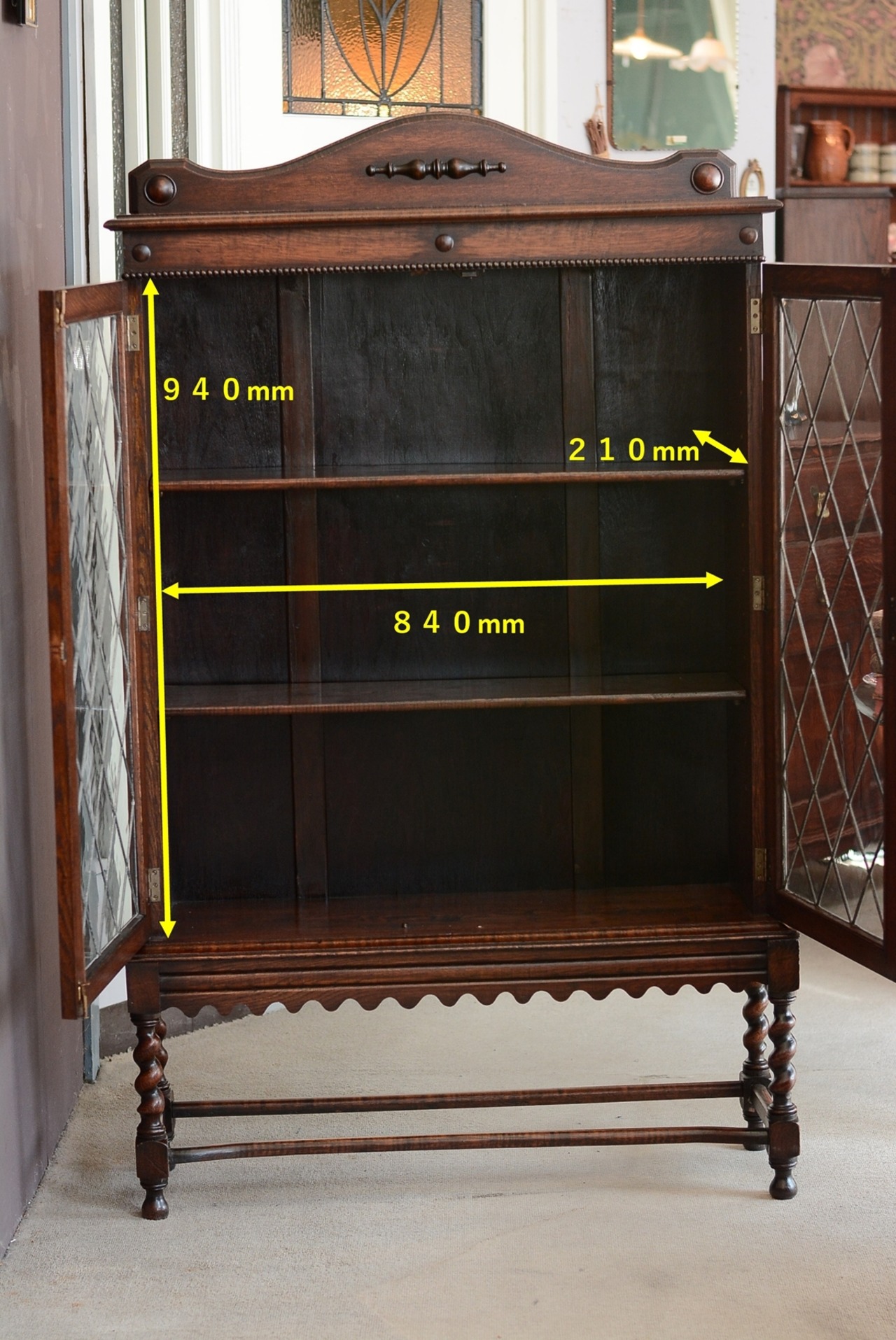 232a642《ブックケース》アンティークブックケース ステンドグラス 美しいリーデットグラス ツイストレッグ