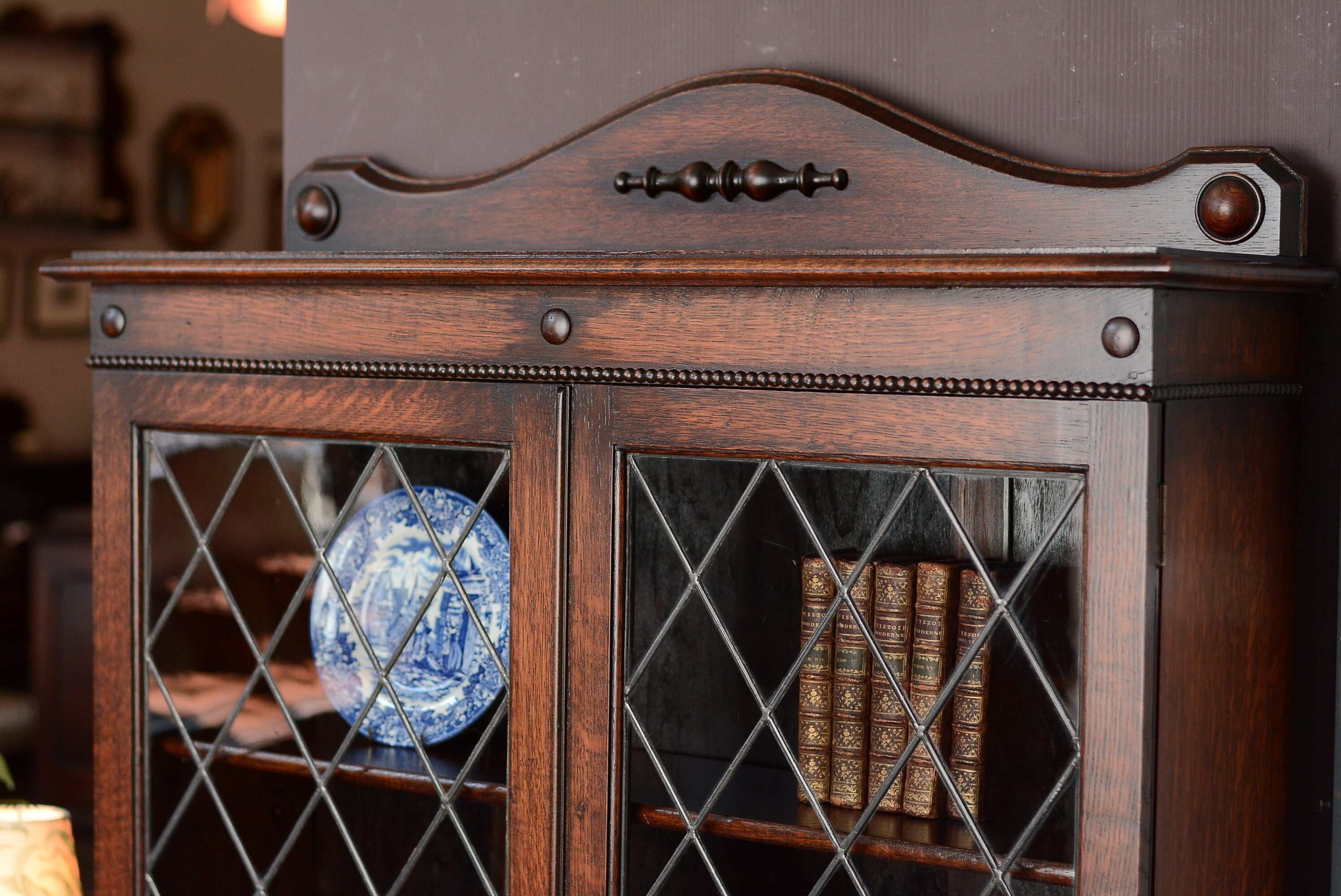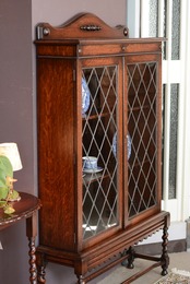 リーデットグラスが美しい、イギリスアンティークブックケース。