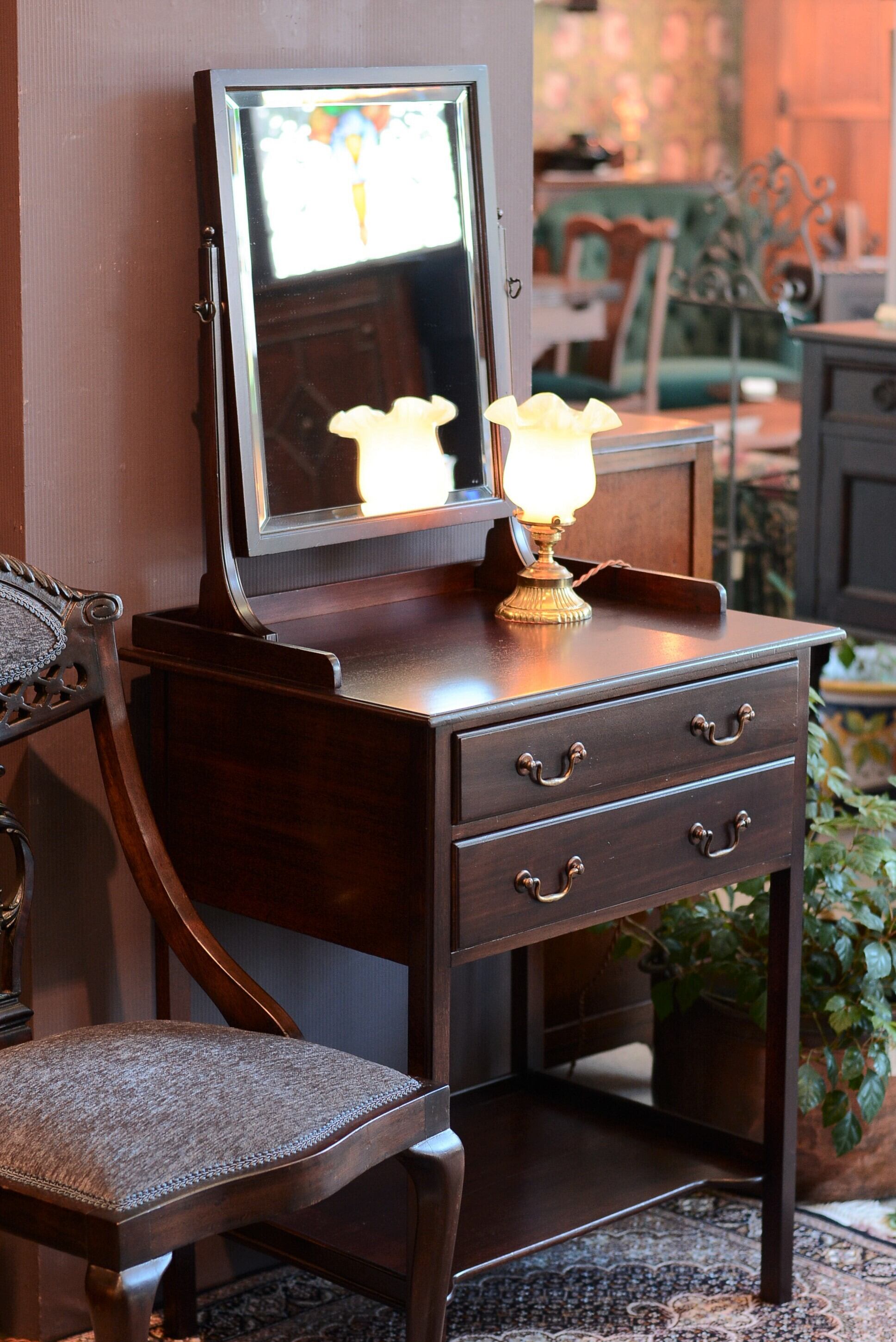 232a692《ドレッシングチェスト》アンティークドレッサー マホガニー材の小さくてエレガントなドレッシングチェスト ミラー付きのチェスト