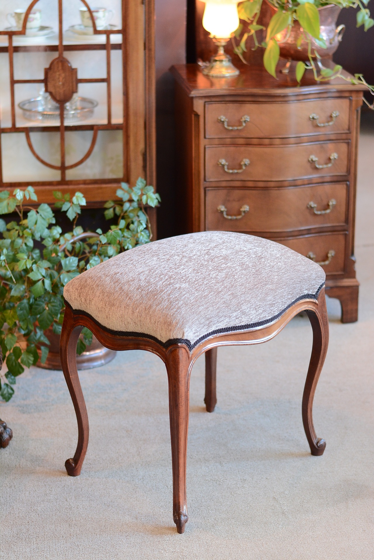 上品な猫脚デザインが可愛いアンティークスツール。