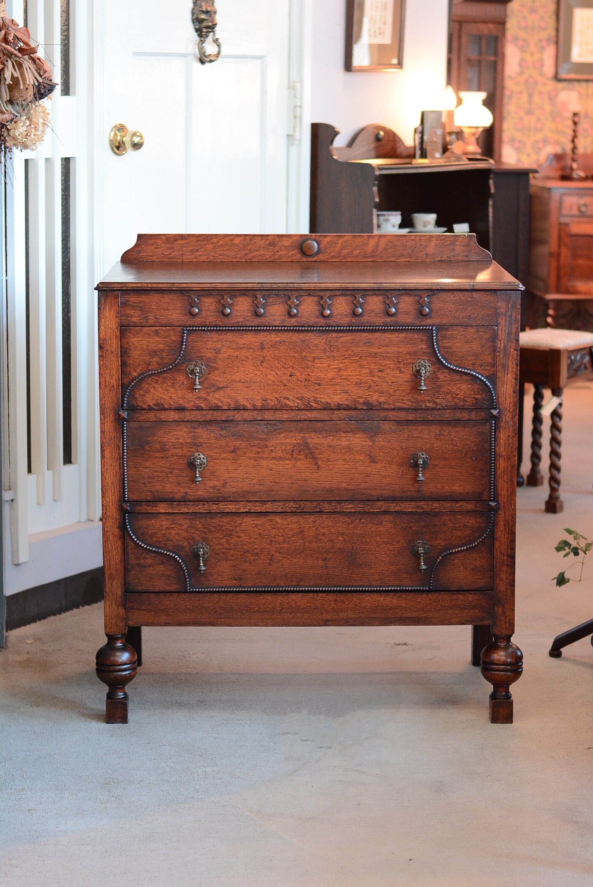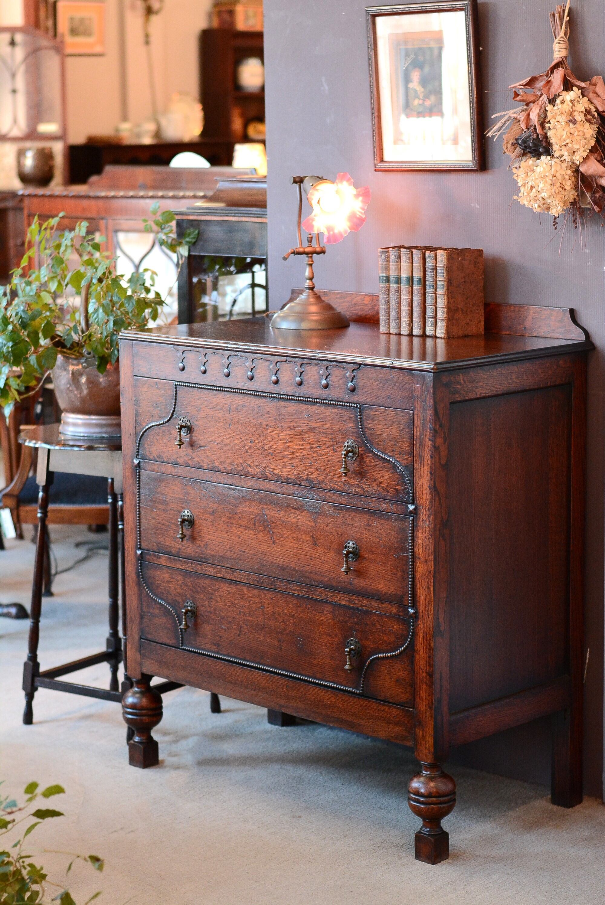232a744《チェスト》アンティークチェスト 落ち着いた雰囲気 オーク材の質感が良い 3杯引き出し 重厚感のあるアンティーク家具