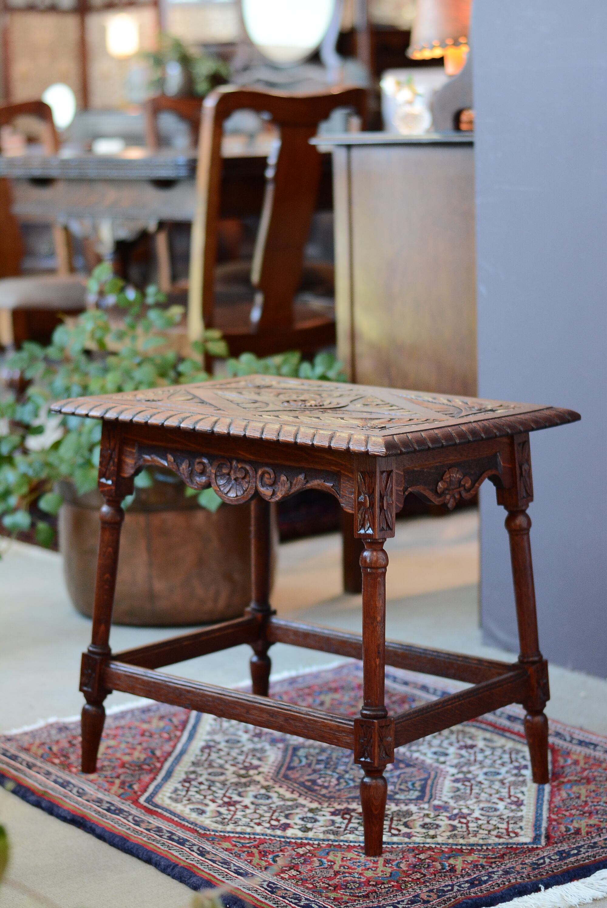241a789《オケージョナルテーブル》アンティークテーブル 彫刻が美しい 小さなアンティークテーブル 英国アンティーク家具