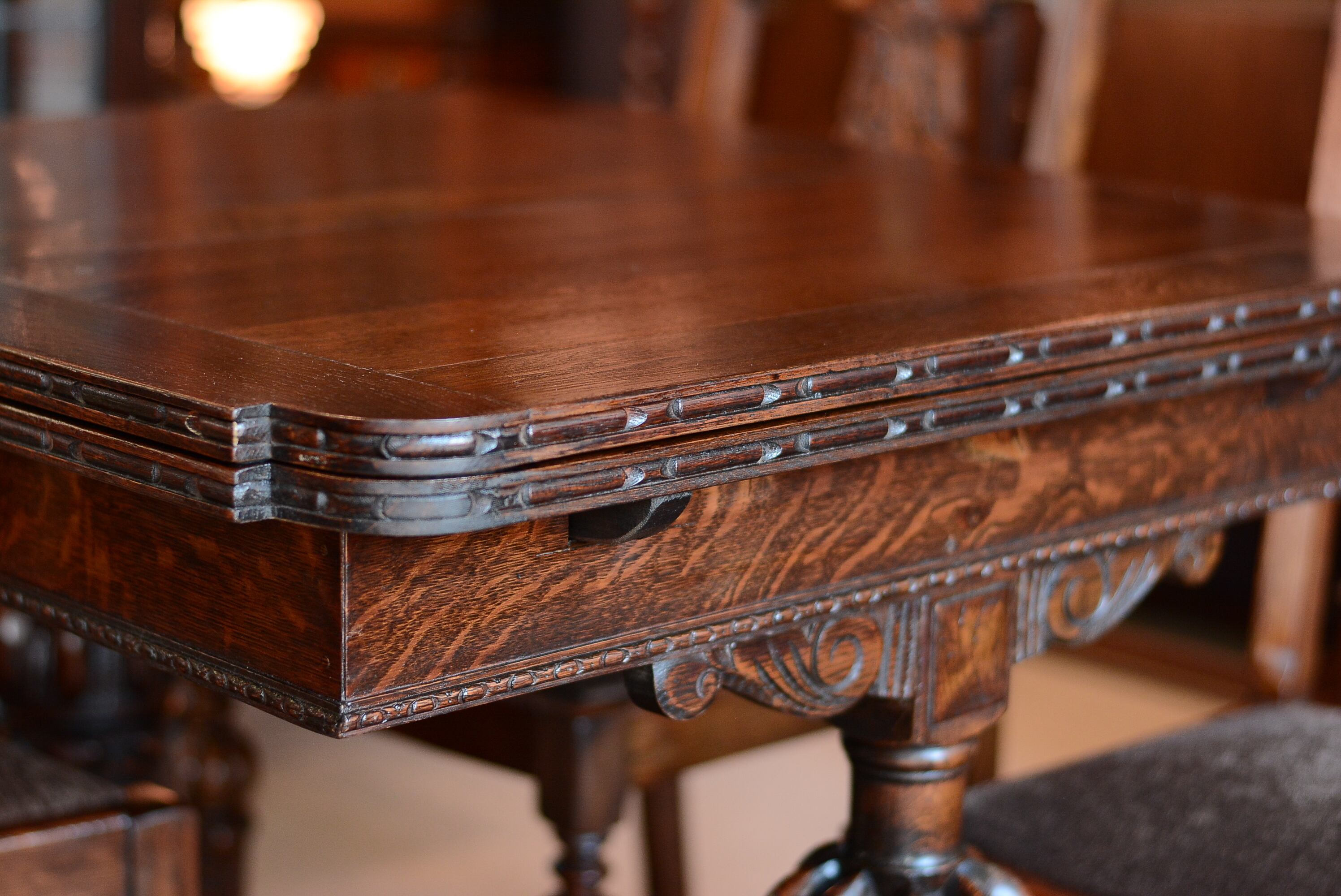243a792 《ドローリーフテーブル》アンティークダイニングテーブル しっかりした彫刻のオーク材 伸長式 大きさが変えられるテーブル