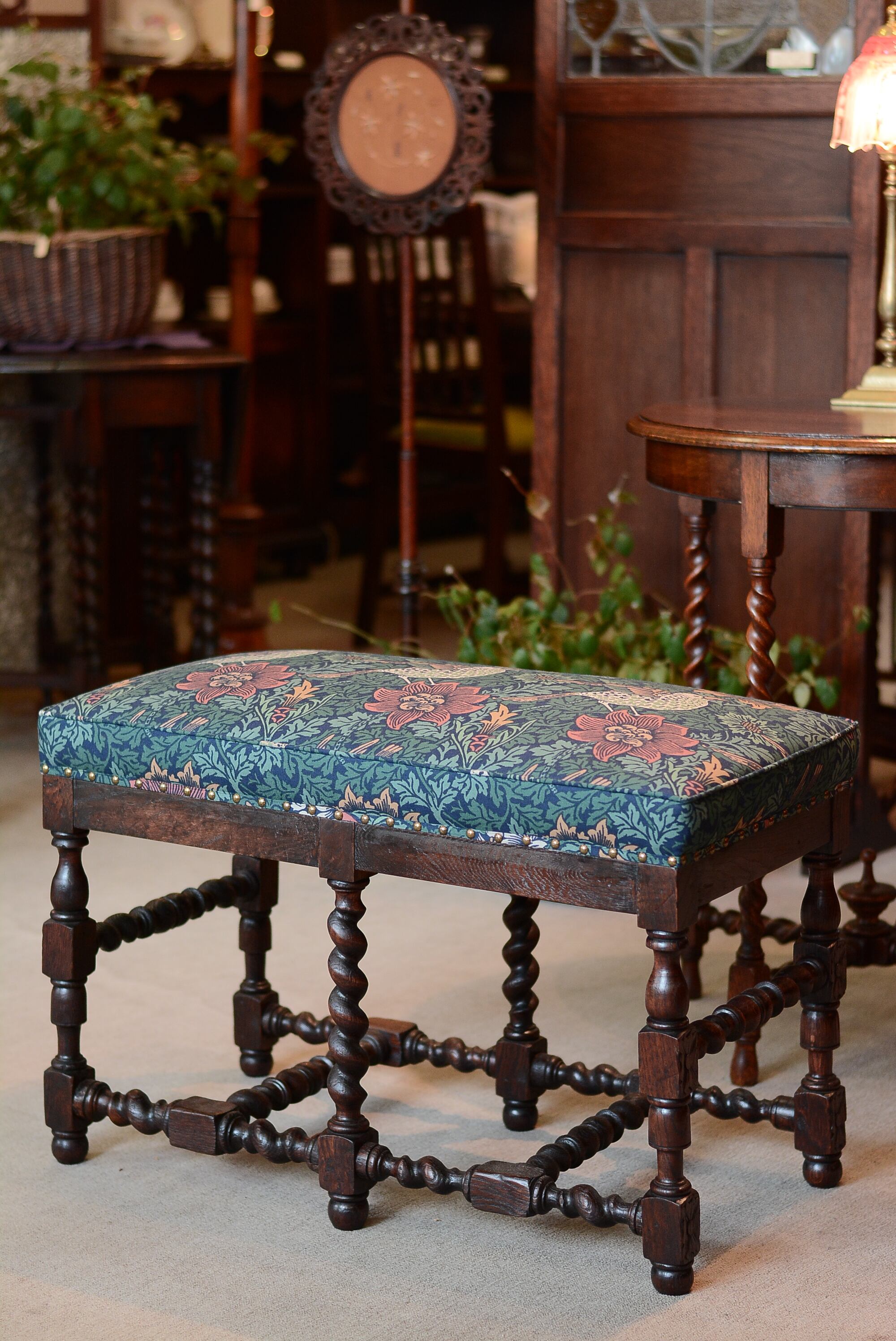 241a800《スツール》アンティークスツール ウイリアムモリスのスツール ツイストレッグ バードアンドアネモネで張替え済み 綺麗なアンティーク家具