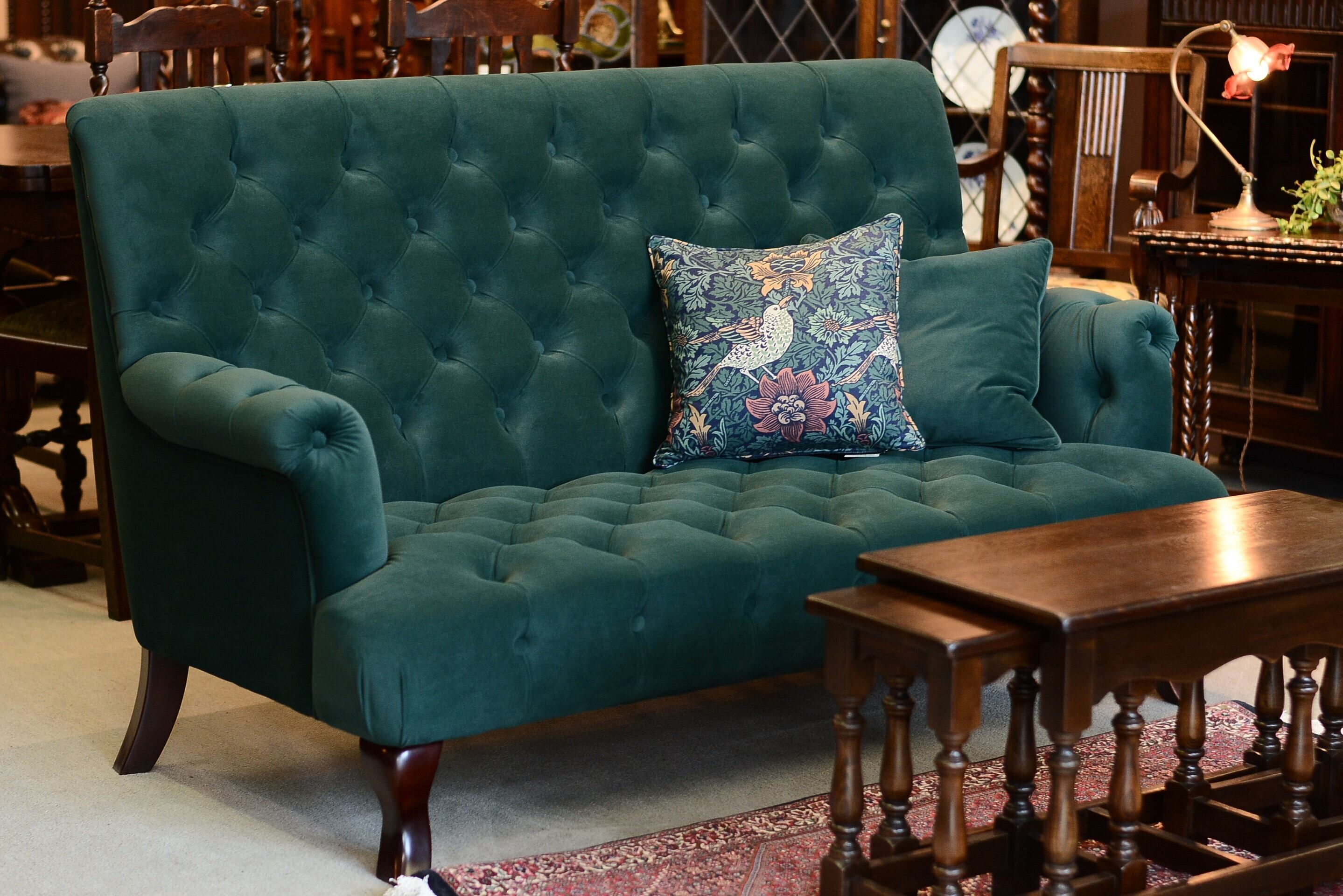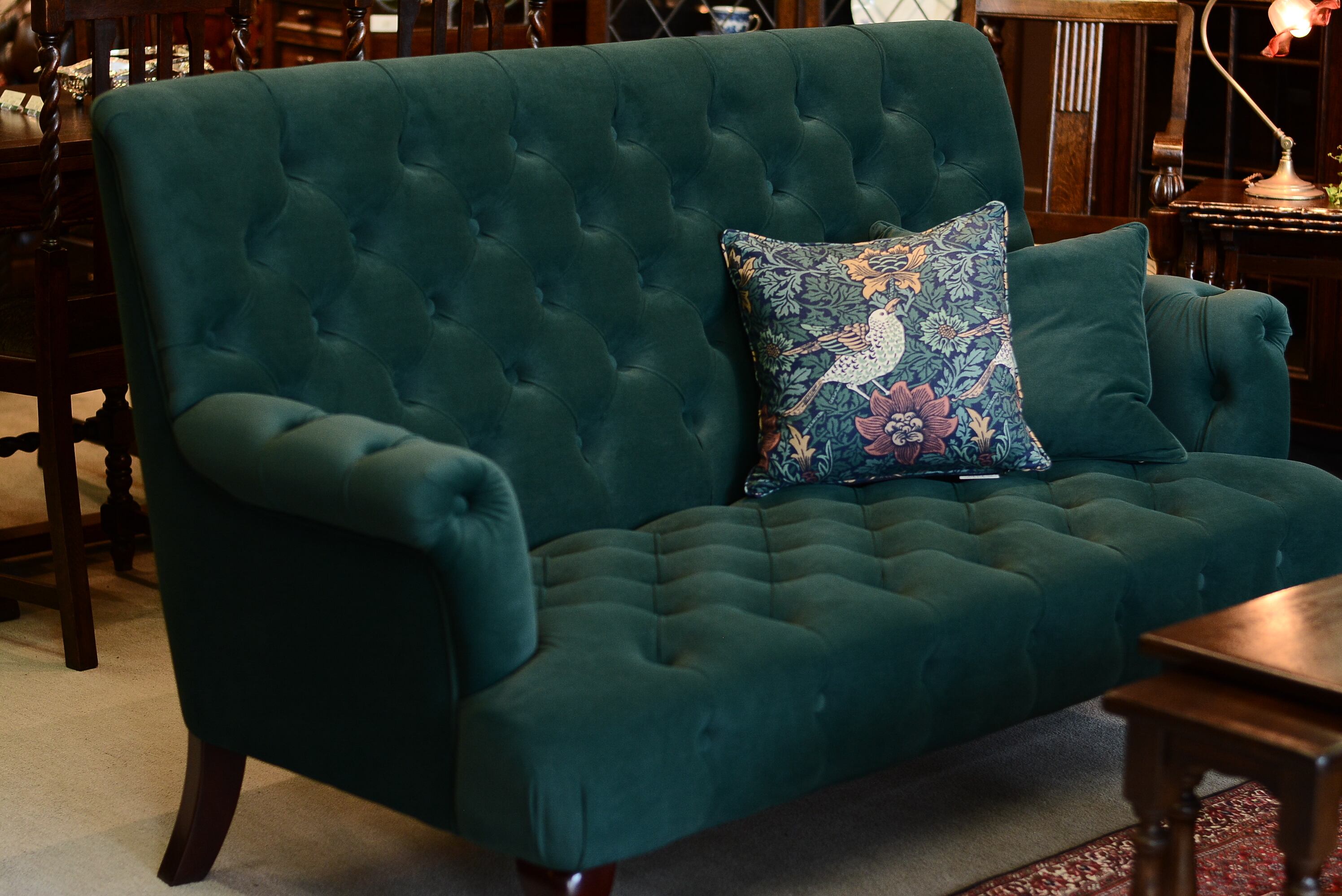 24e836 《2人掛けソファー》ハイバックボタン締めソファー クラシック2Pソファー エレガントなグリーンのソファー
