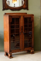 彫刻がふんだんに施されたアンティークブックケース。