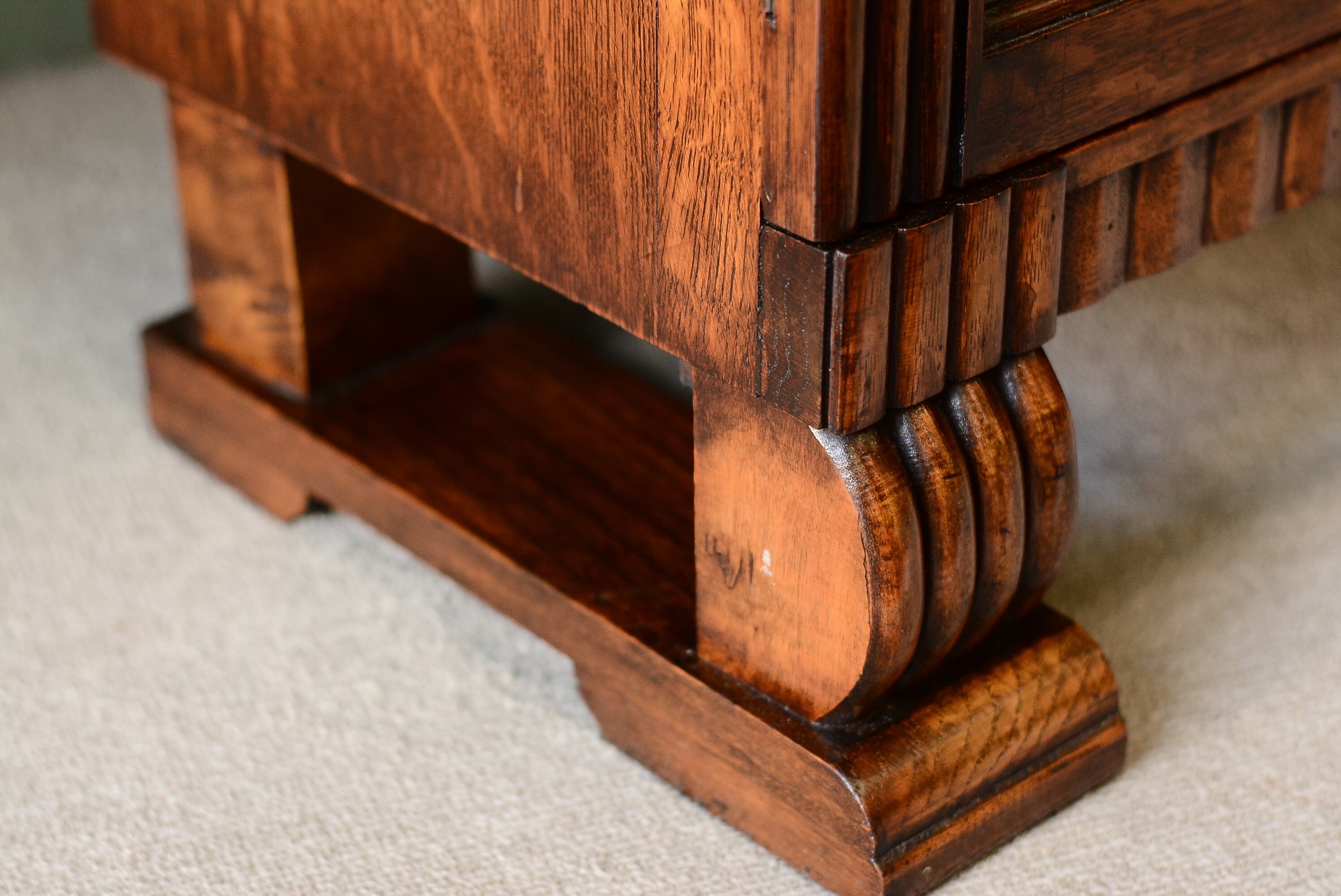 多少の小傷やシミ、消しきれないへこみなどがある場合がございますが、アンティーク家具の持つ風合いとしてご了承くださいませ。