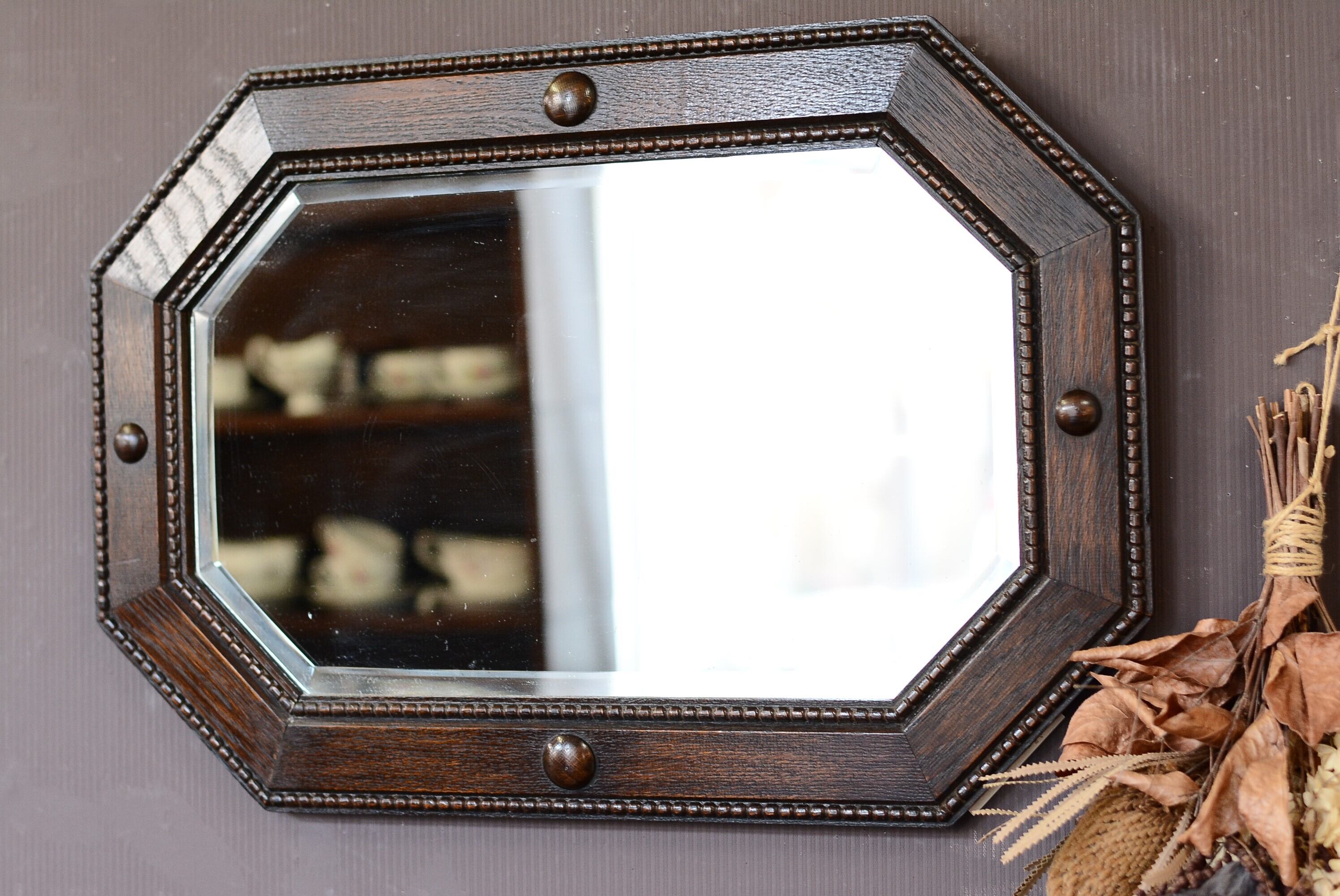 オーク材の落ち着きのあるアンティークウォールミラー。