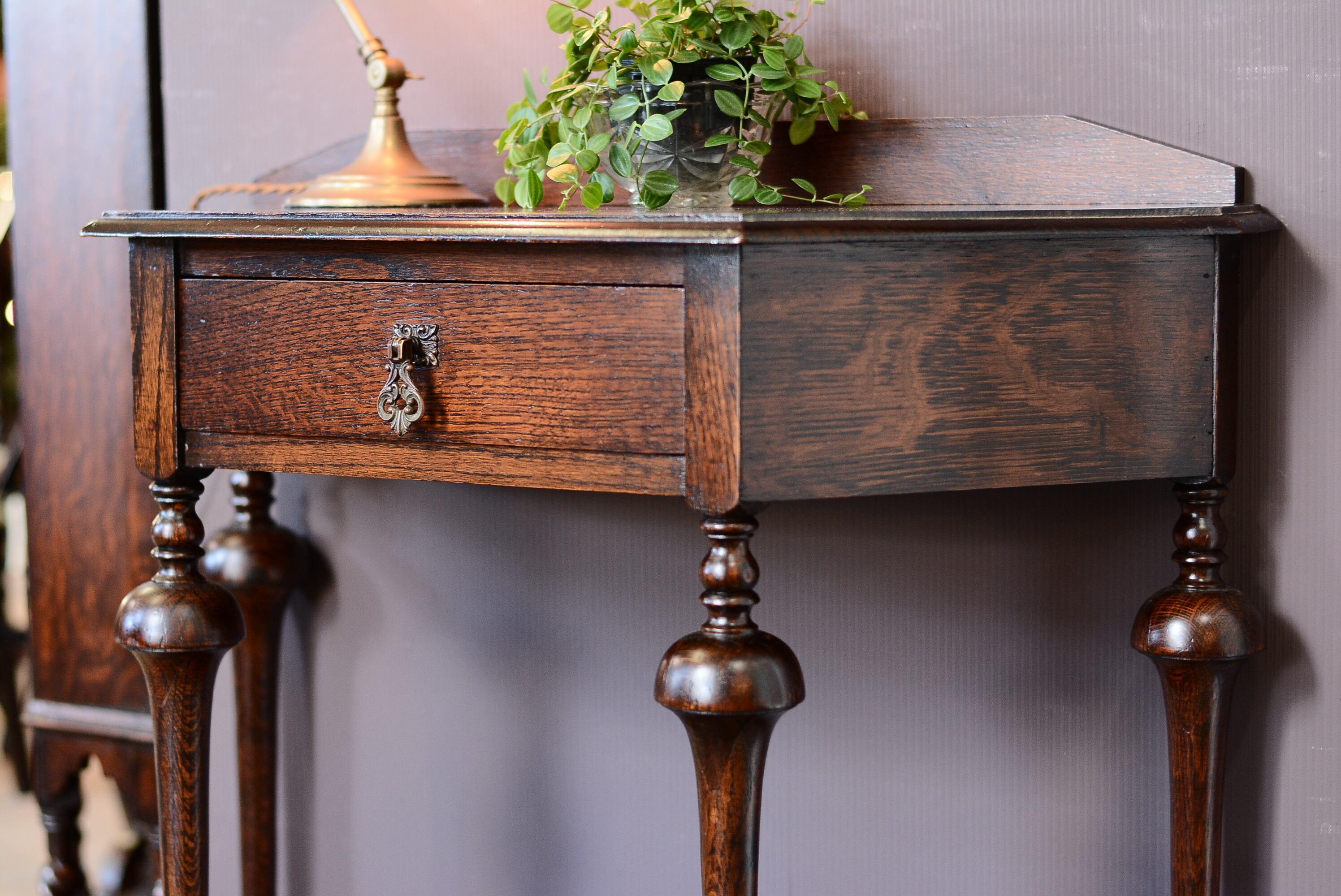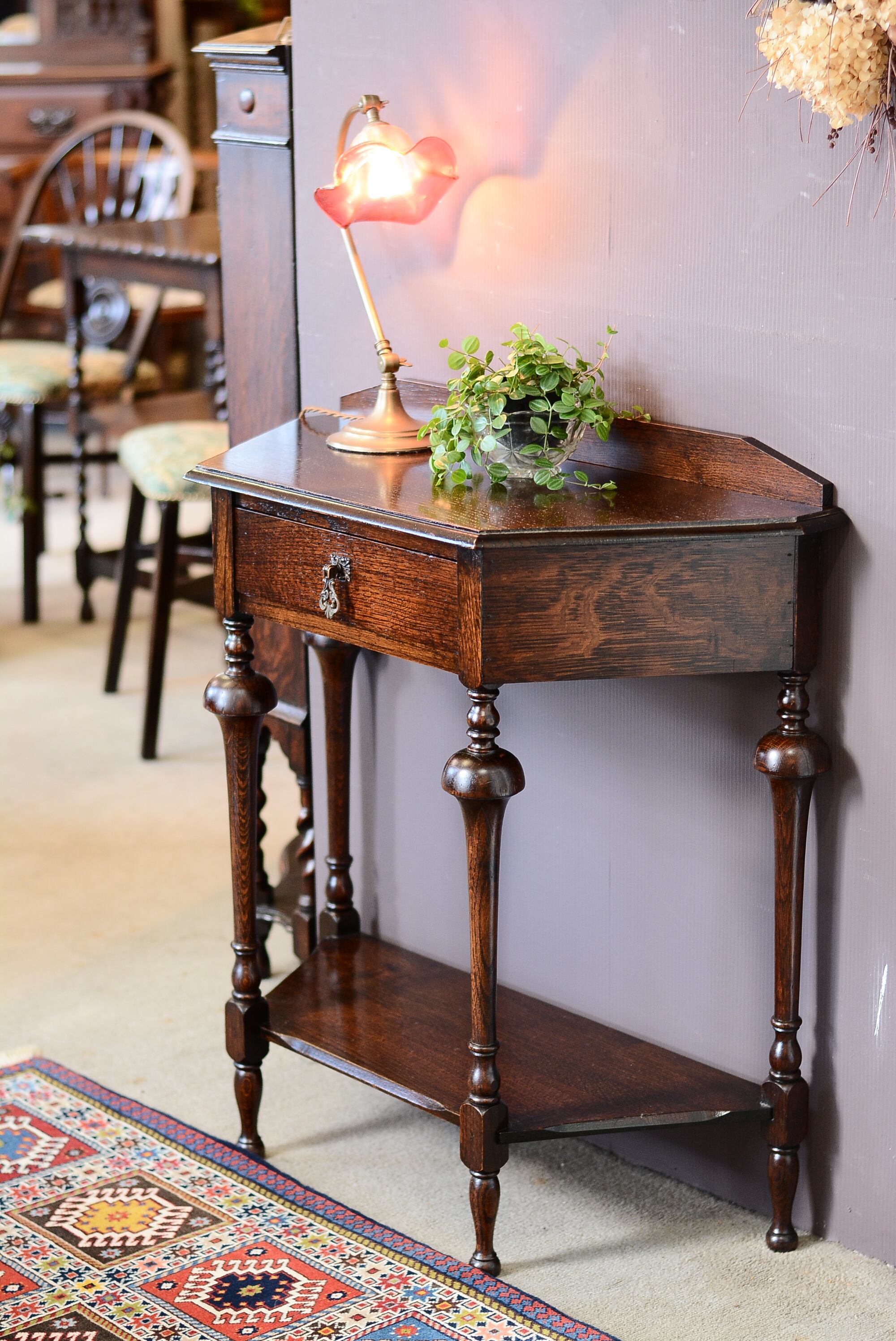 242a869《コンソールテーブル》アンティークコンソールテーブル 引出付きで便利 オーク材のアンティーク家具