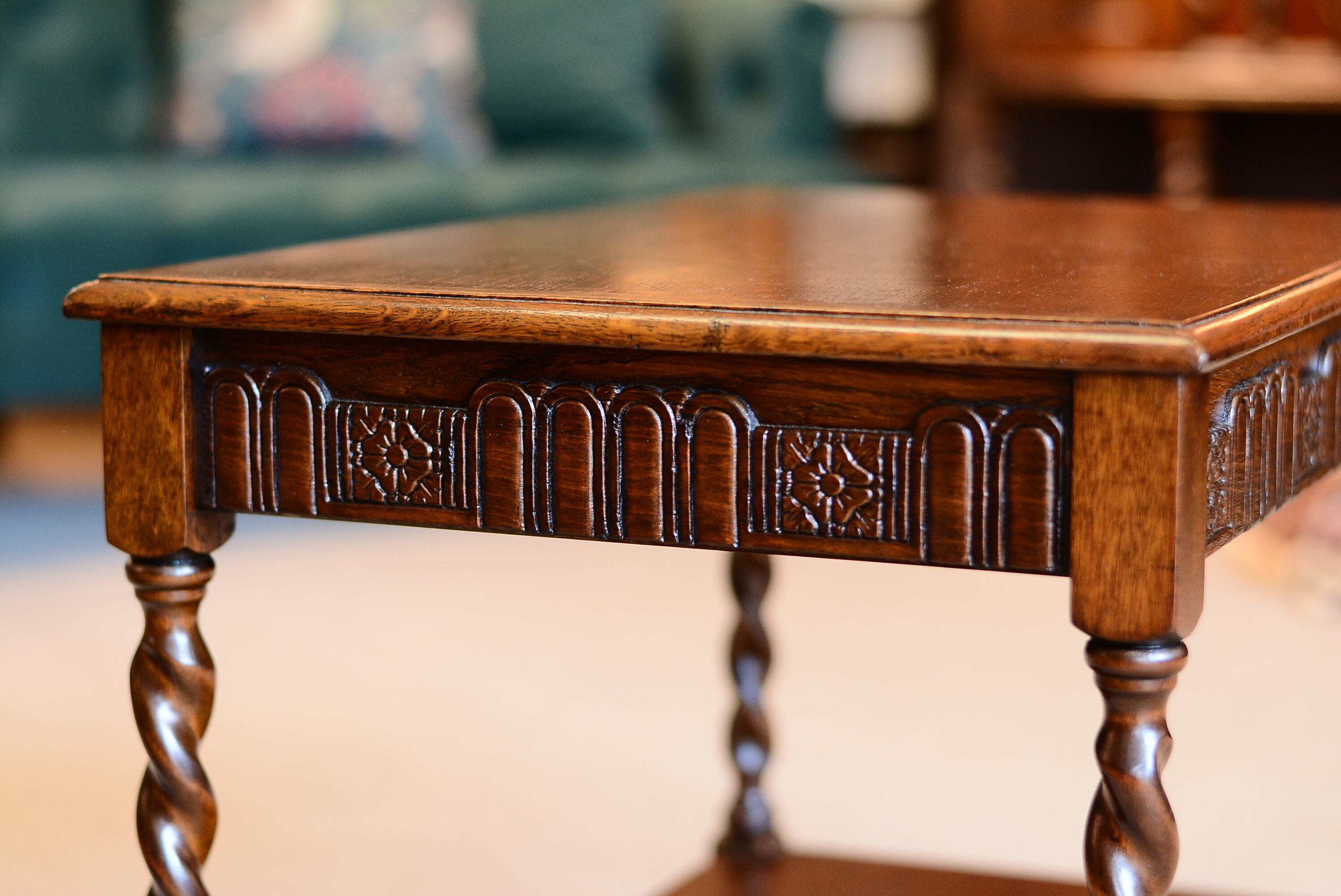 242a870《コーヒーテーブル》アンティークテーブル 彫刻の入った小さなテーブル ツイストレッグ イギリスアンティーク