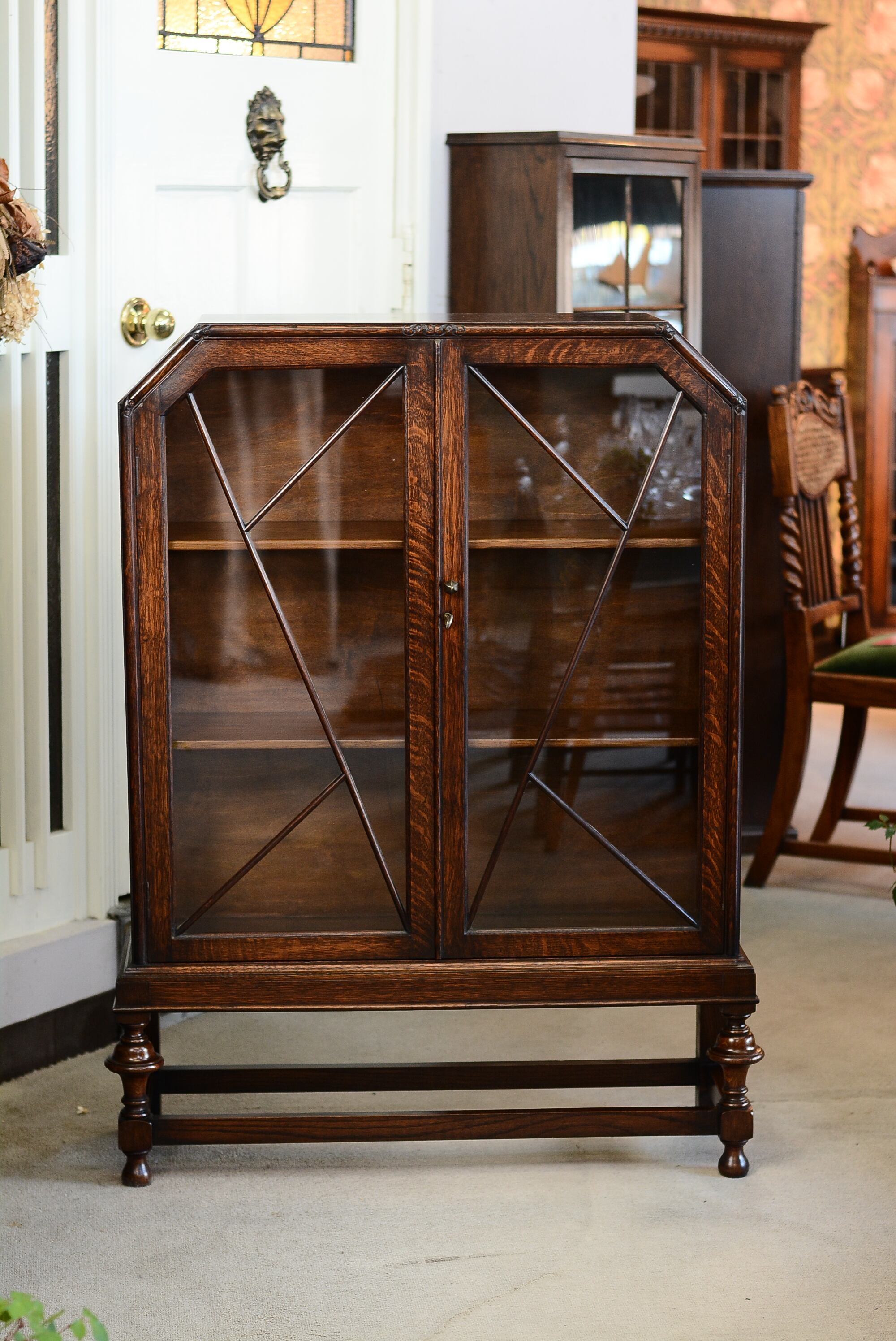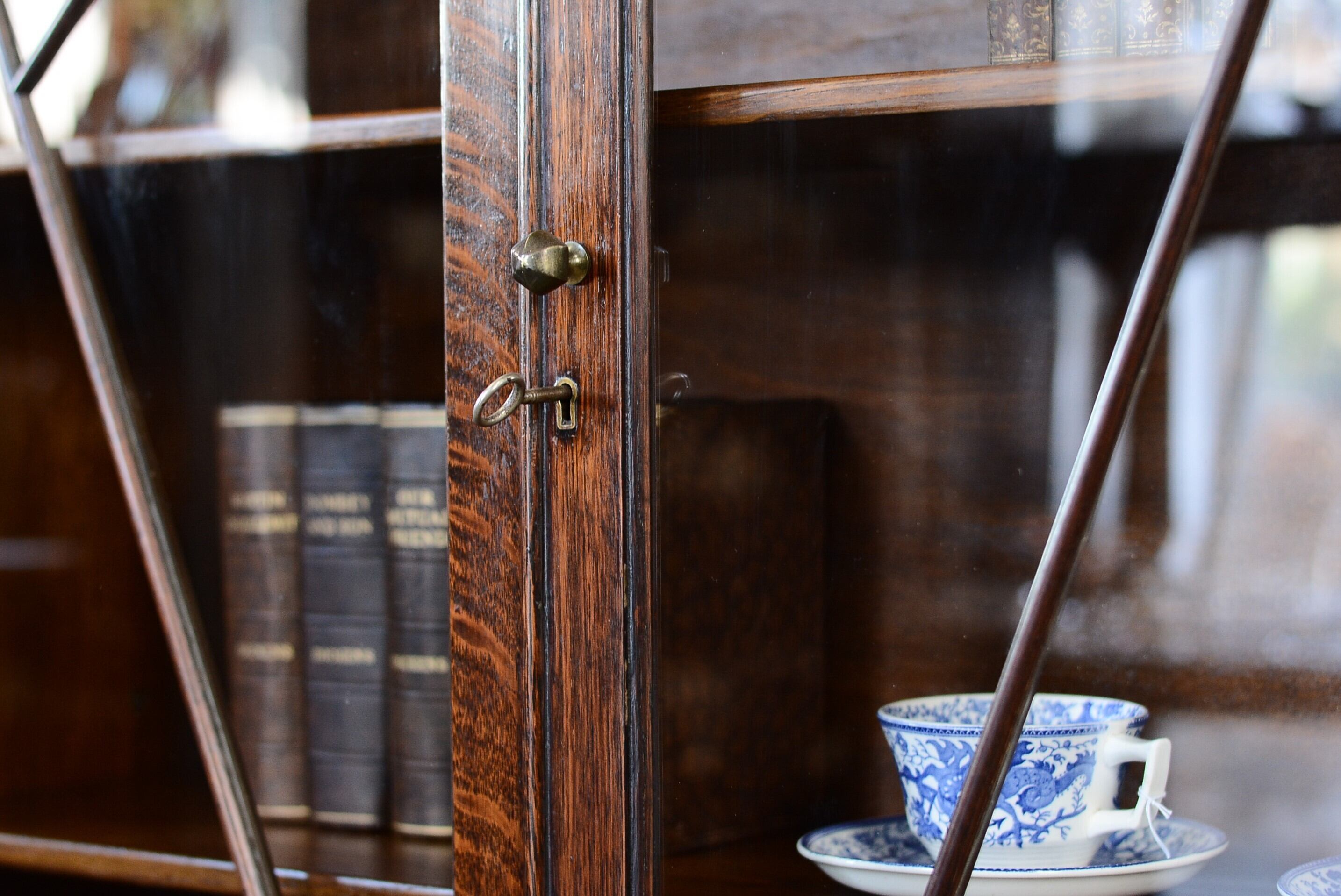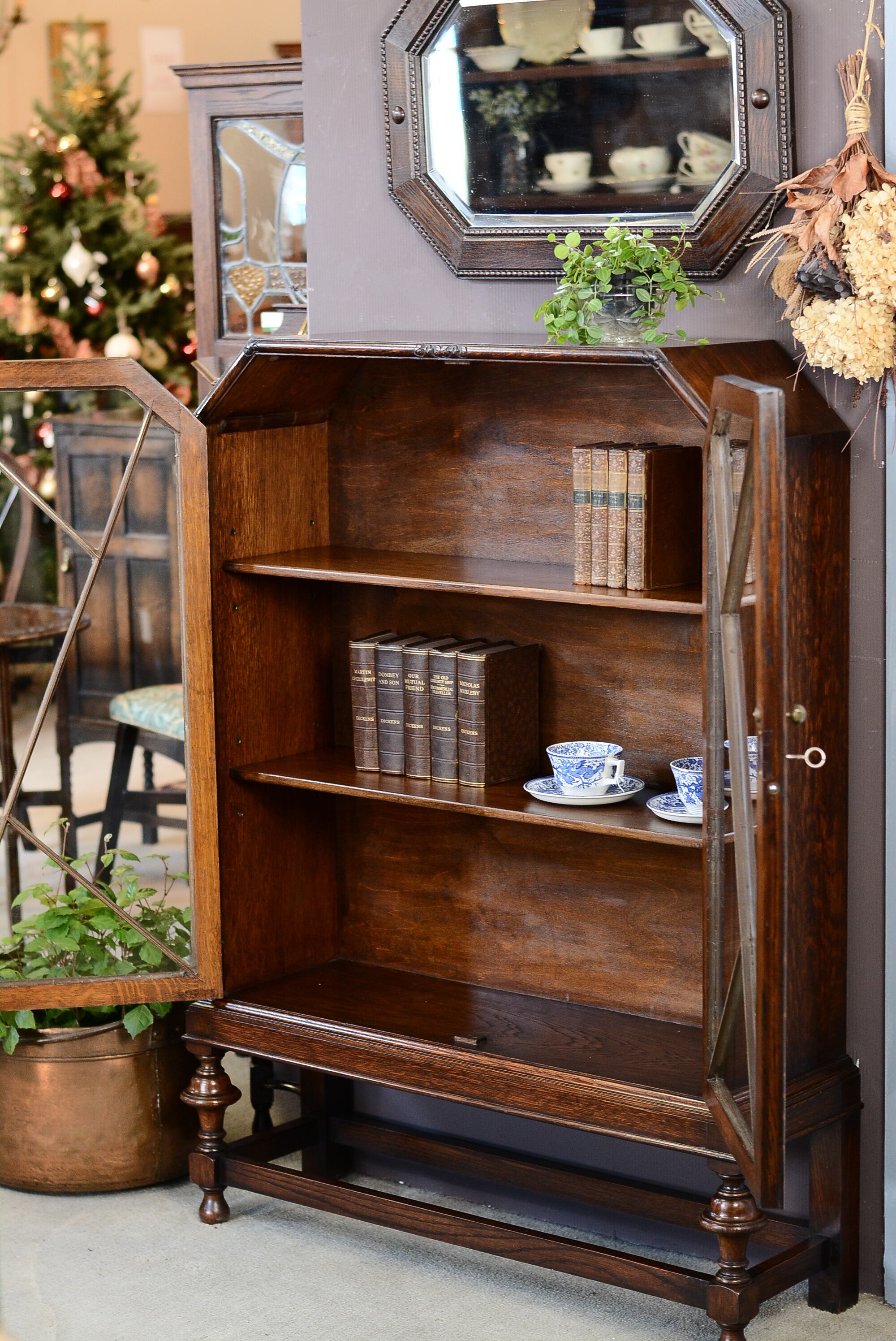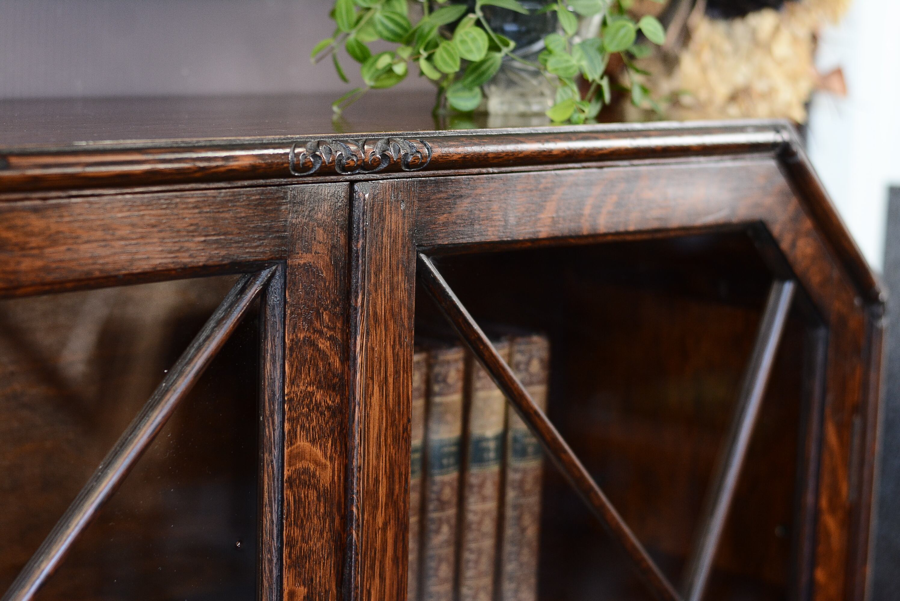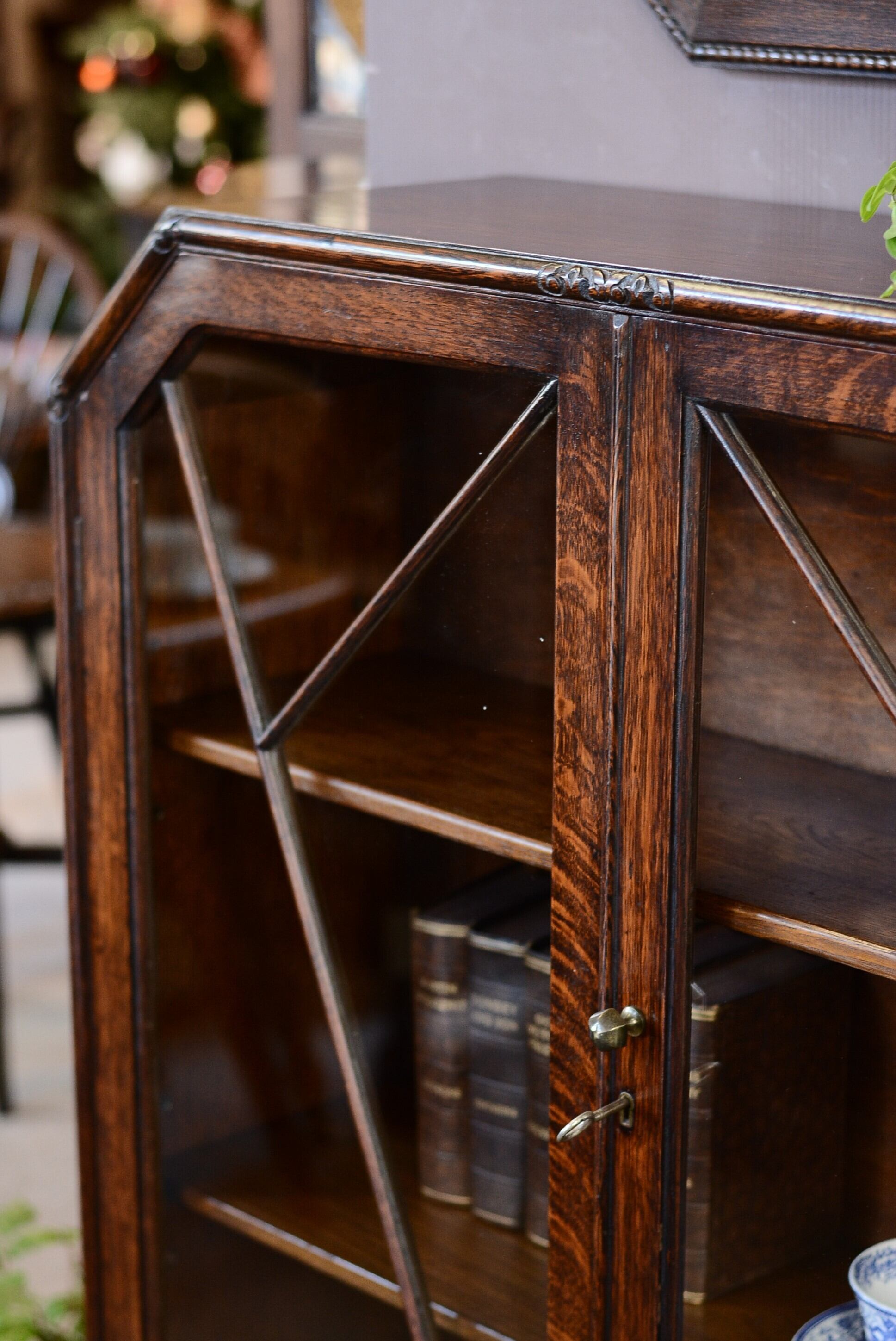 241a873《ブックケース》アンティークブックケース シンプルなデザイン キャビネットにも 小さな彫刻がアクセントの本棚